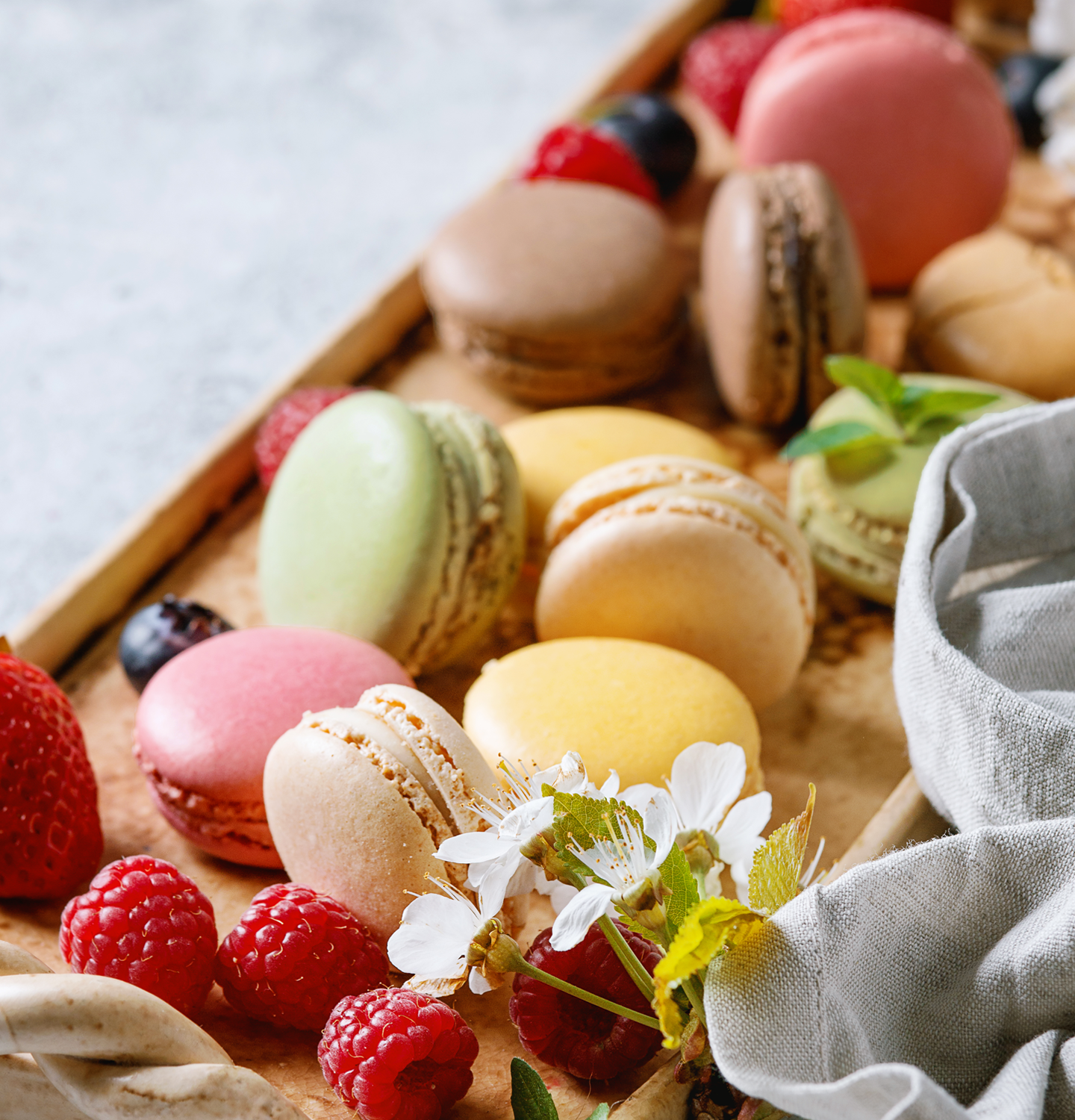 Flavors: Chocolate, Raspberry, Vanilla, Salted Caramel, Lemon and Pistachio.